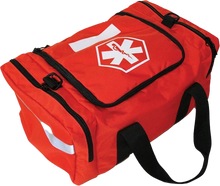 FIRST RESPONDER BAG #RB 828OR. #RB 828RB The First Responder Bag is large enough to accommodate multiple patient care. It features a large center compartment with a U shaped zipper for easy access. The bag has webbed carrying handles and 3M™ heat applied silver reflective trim to minimize contamination. It is made using Cordura® nylon and #8YKK double zippers on all openings. There is a white silk-screened Star of Life & ID bar on the top of the bag. The bag is available in orange and royal blue. It weighs 28 oz. and has overall dimensions of 18”L x 11”W x 10”H.